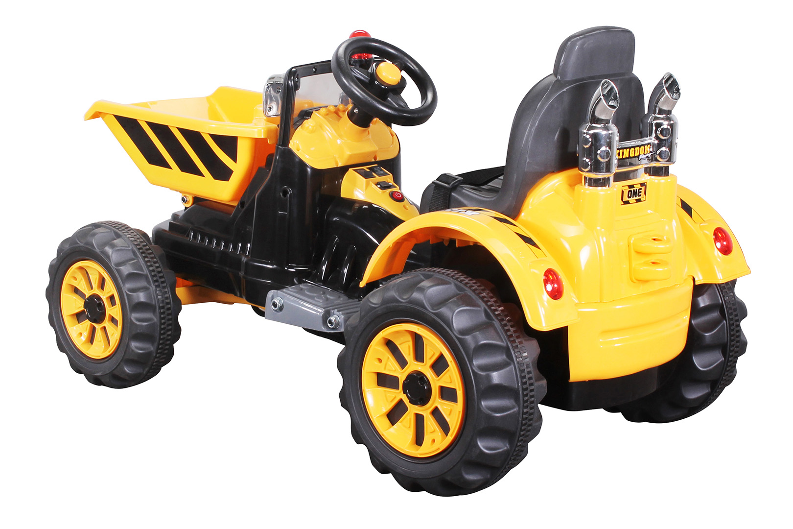- Mașinuța JS328 este un vehicul electric de joacă pentru copii, tractor/excavator cu cupă destinat celor mici (de obicei 2‑6 ani). Este echipată cu două motoare electrice puternice, baterii reîncărcabile și roți robuste din plastic cu bandă de cauciuc, oferind viteză ajustabilă înainte/înapoi, pornire/oprire simplă, volan cu claxon și uneori sistem de iluminare. Cupa frontală poate fi folosită manual pentru joacă creativă și distractivă în aer liber.