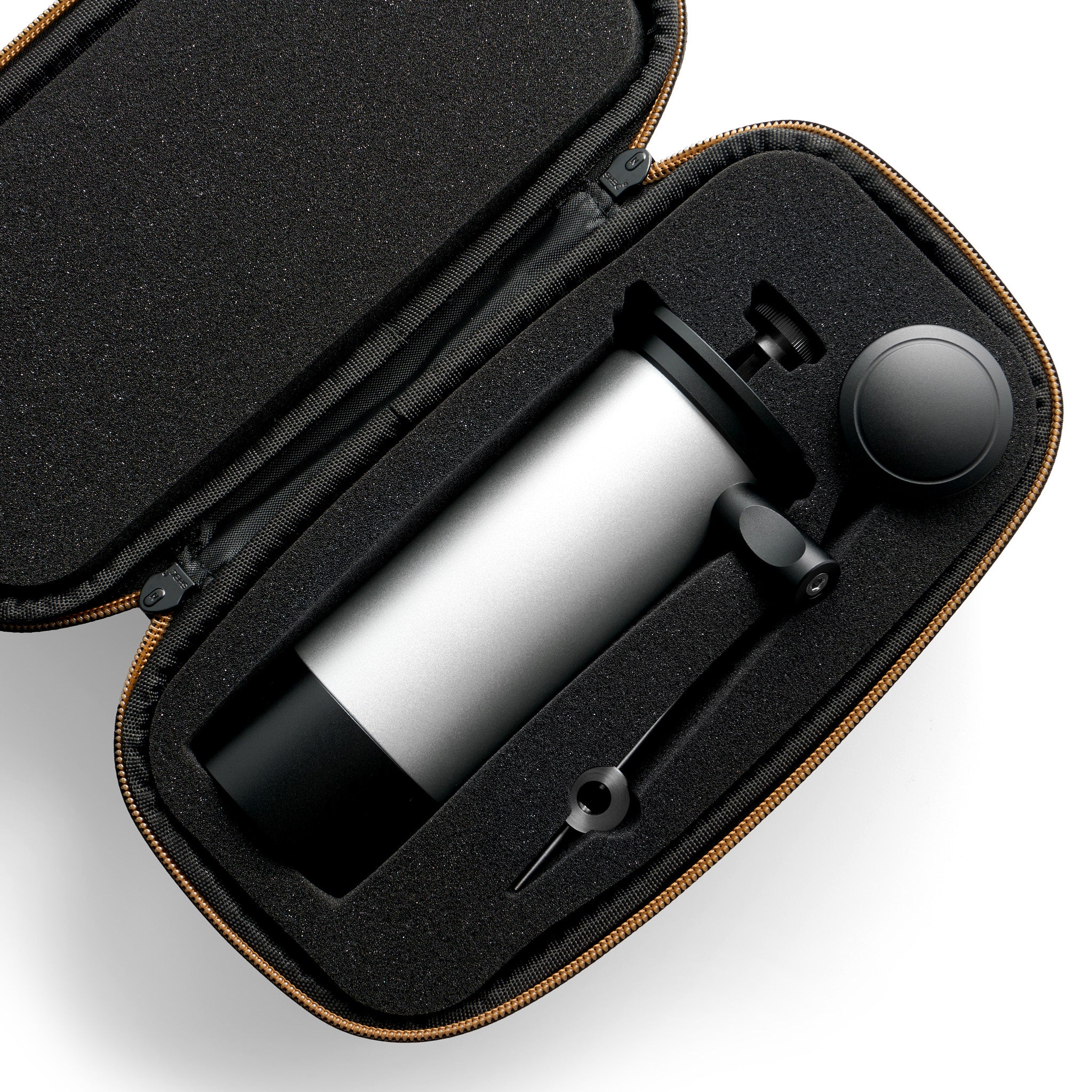 Este inclusă o geantă compactă de călătorie, astfel încât să puteți lua în siguranță râșnița cu dvs. în orice aventură.
