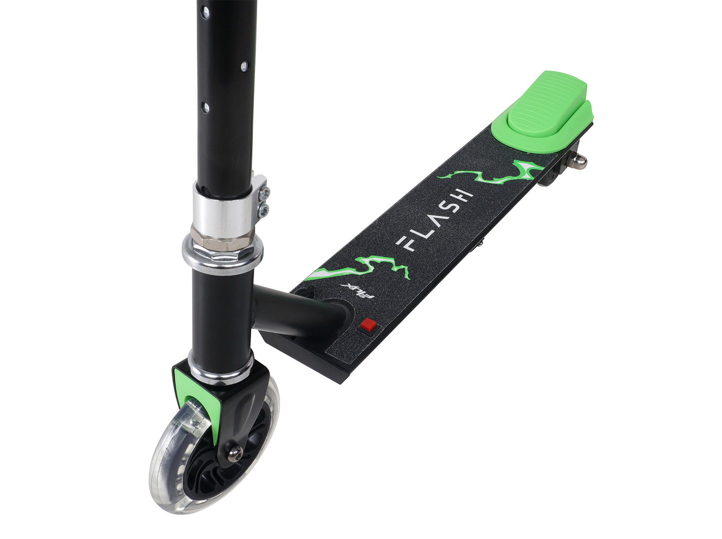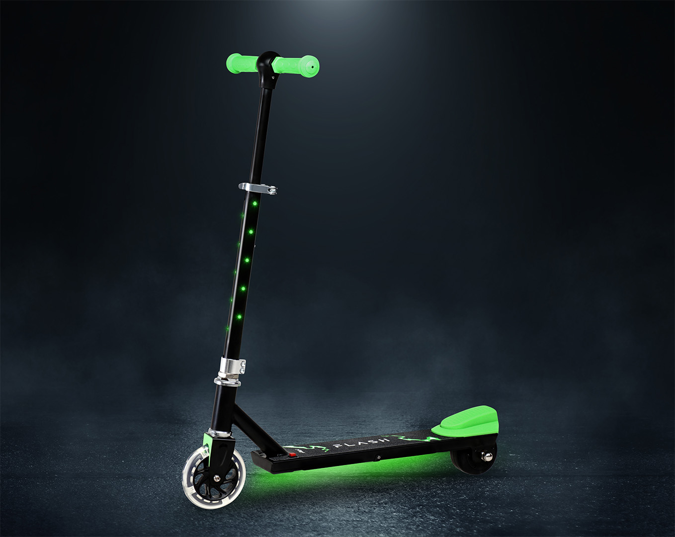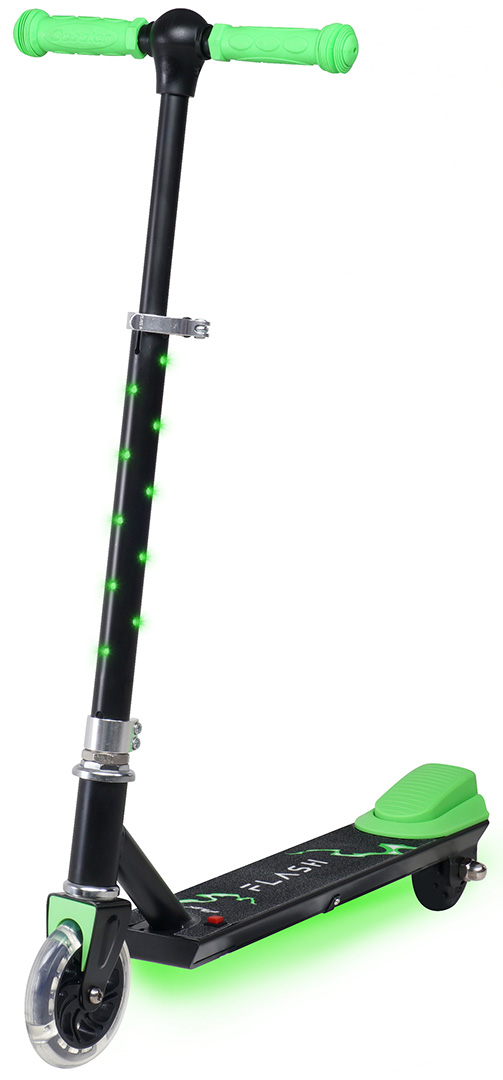 rotineta electrică eFlux Flash pentru copii este concepută pentru distracție și siguranță. Echipată cu un motor electric de 100 W putere continuă, oferă o viteză maximă de 6 km/h, perfect adaptată copiilor. Iluminarea LED sub cadru, pe ghidon și pe roata față de 4 inci asigură un design atractiv și vizibilitate sporită.